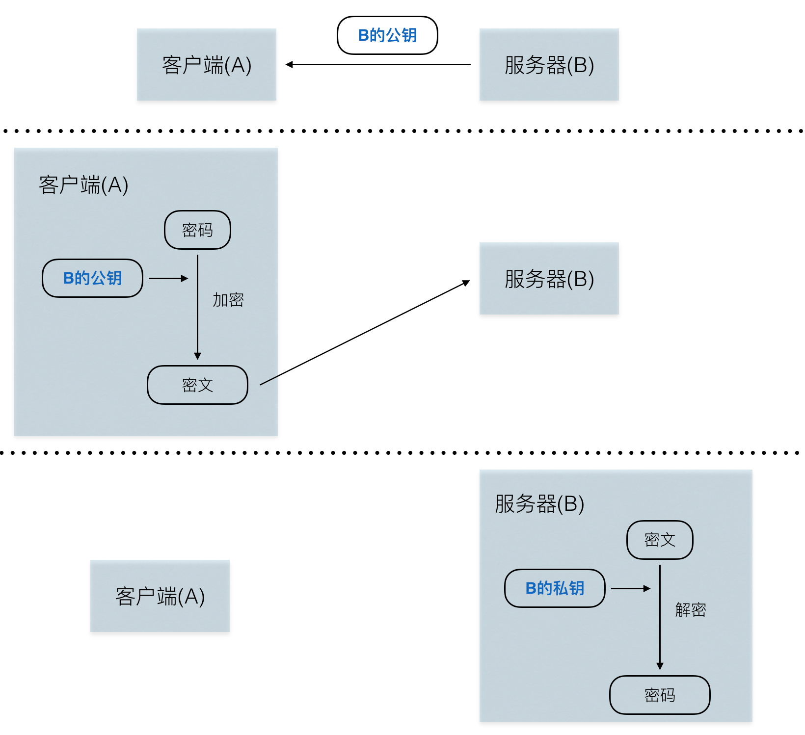 上图的过程是这样的,B有一个密钥对(公钥和私钥):
